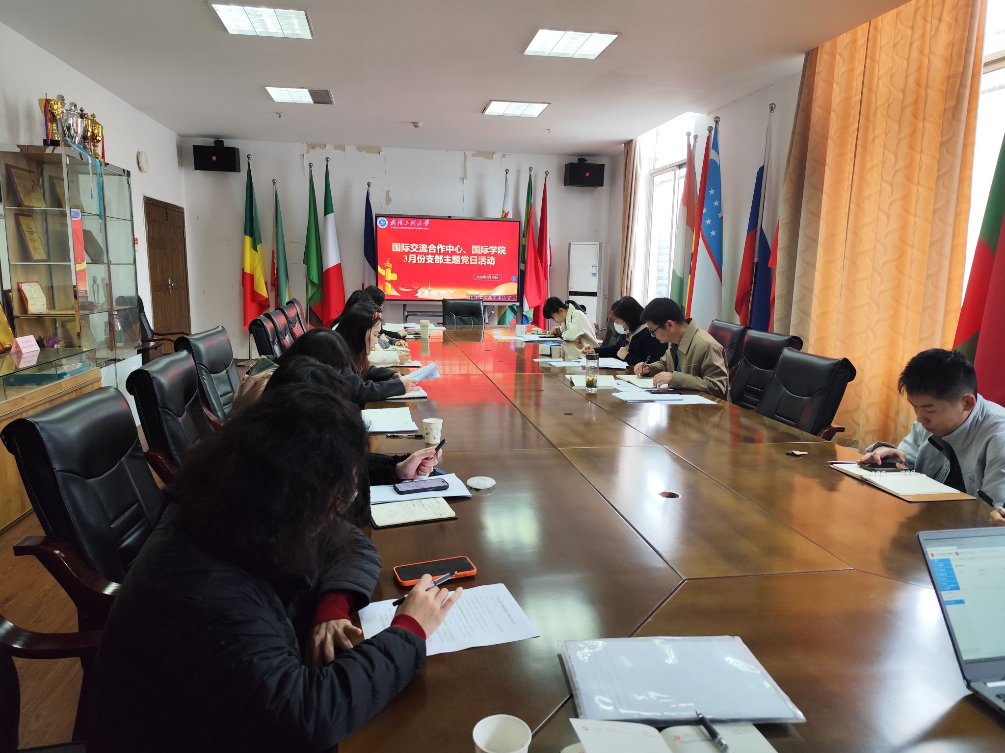 本网讯(通讯员 陈小红)3月23日上午,国际交流合作中心国际学院直属党支部在武昌校区721会议室组织召开了3月份支部主题党日暨树立和践行正确政绩观学习教育专题学习会,直属党支部书记桂展鹏主持会议,全体...
