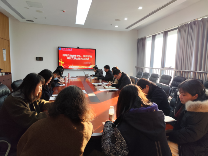 本网讯(通讯员 陈小红)1月15日上午,国际交流合作中心国际学院直属党支部在流芳校区213会议室组织召开了1月份支部主题党日,直属党支部书记桂展鹏主持会议,全体党员参加会议。